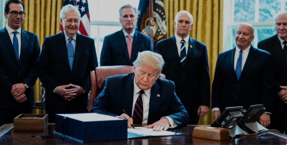 The image is of Trump signing the CARES Act, as a brief reminder this act was a $2.1 trillion stimulus bill in response to Covid-19. The bill included direct payments to individuals of $1,100 per adult, small business loans, unemployment benefits and mortgage forbearance (allowed homeowners to defer payments for 12 months). That ladies and gentlemen is money printing, money being created out of nowhere and sent straight into the economy, increasing the discretionary income available to the average citizen.