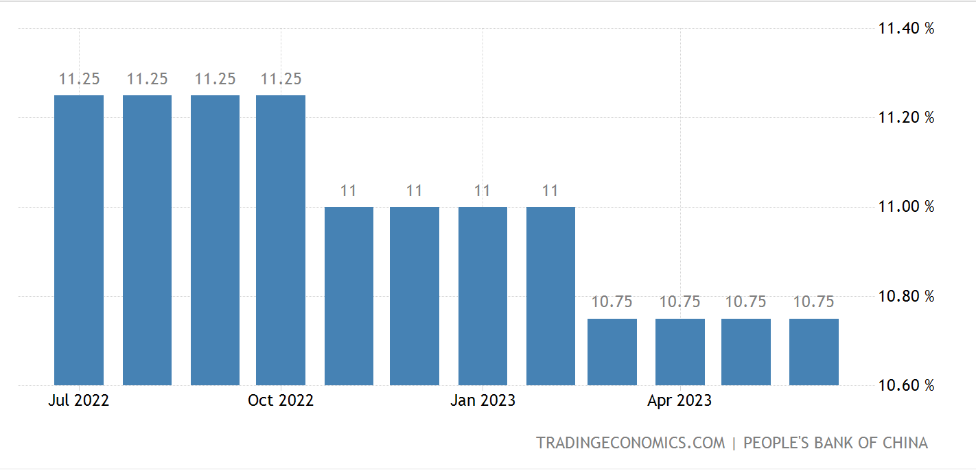 Although this tool can be extremely effective a number of central banks steer away from continually adjusting the reserve ratio such as the Fed, BOE and ECB. However, the PBOC is renowned for using this policy tool as a key mechanism within its monetary policy approach. Look at Figure 1.