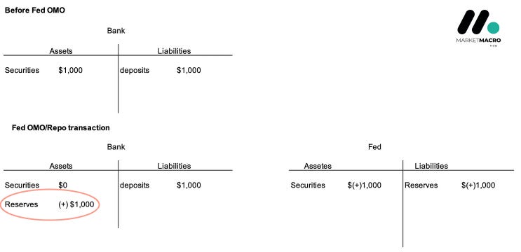 As you can see, all that happens is an exchange of reserves from the Fed to the Bank, securities out, reserves in.