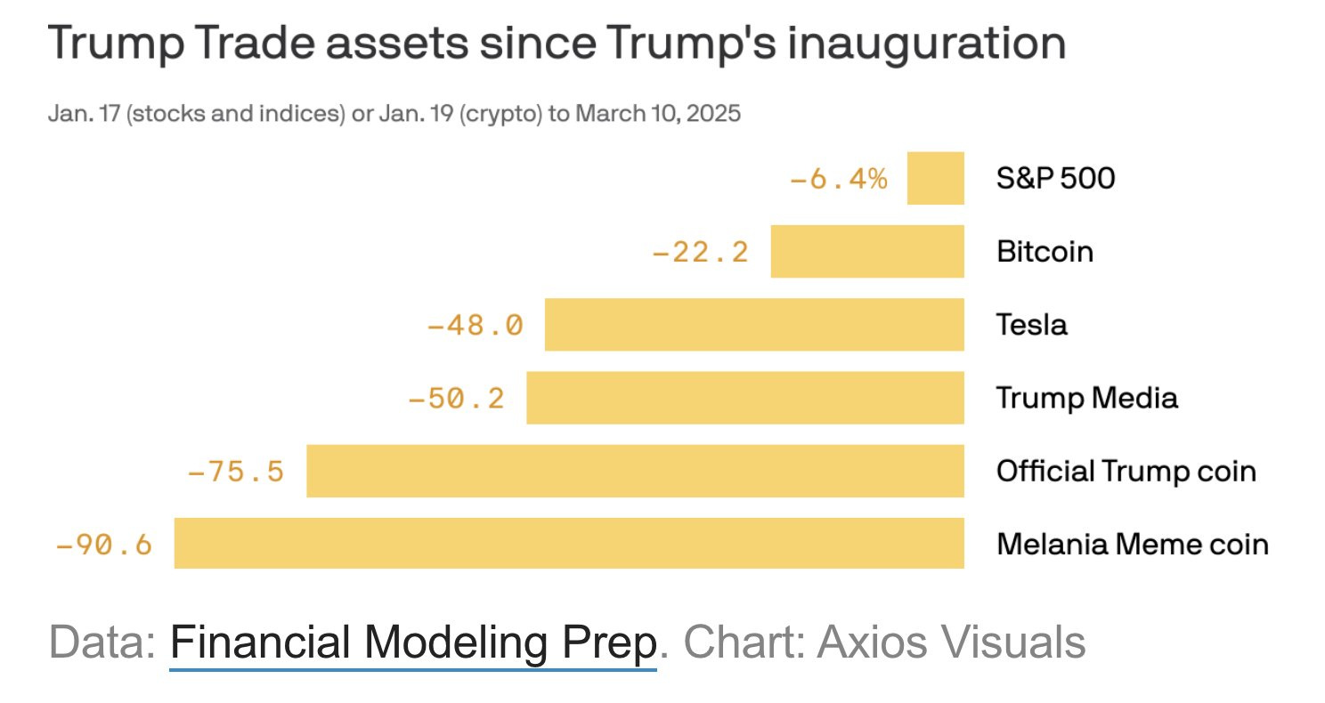To add to the large Mag7 sell-off, anyone who has bet against the "Trump trade" since the inauguration has seen impressive profits. There’s absolutely no surprise here to me, the only way for those crazy rallies to continue is for Trump to over-deliver on his fiscal plans, but he hasn’t even delivered let alone over-delivered! It’s all part of a bigger plan in my opinion, Trump knows what he is doing. Not only does he get what he wants by threats (because they know he will do it), but he is also weakening the dollar and equities beside that so that if tariffs do come into place, they’ll be less harmful to U.S. growth because of the weaker dollar & lower equities.