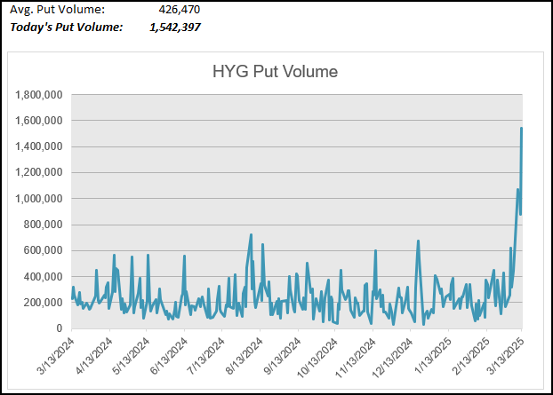 In addition to Gold seeing large safe haven flows, the HYG (the index that tracks high yield corporate bonds) put volume has gone parabolic which is just a second-round effect of investors wanting to be flat in this volatile time to reassess, the good side to this is that there are now some major equities at large discounts.