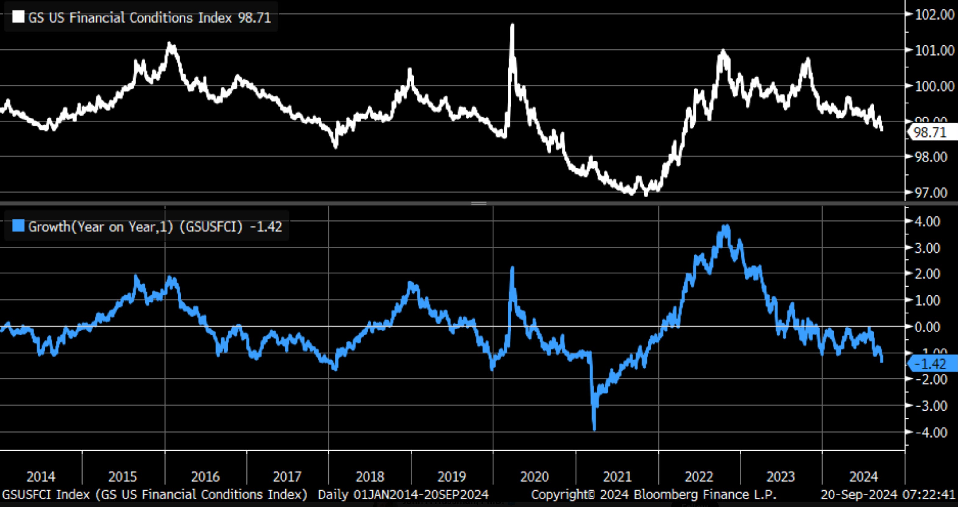 The chart below is a representation of how loose financial conditions are at current rates, which may be the reason behind a terminal rate for 3.00% (a lower rate would run the risk of conditions being too loose and potentially causing a bubble)