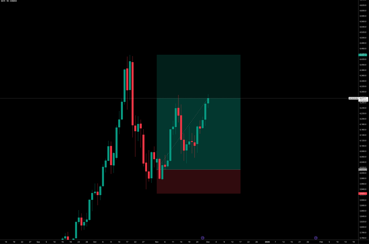 Gold is running risk free and in heavy profit. Same story as copper. If the SOFR curve leans closer to a 25 bp cut, it supports the position.