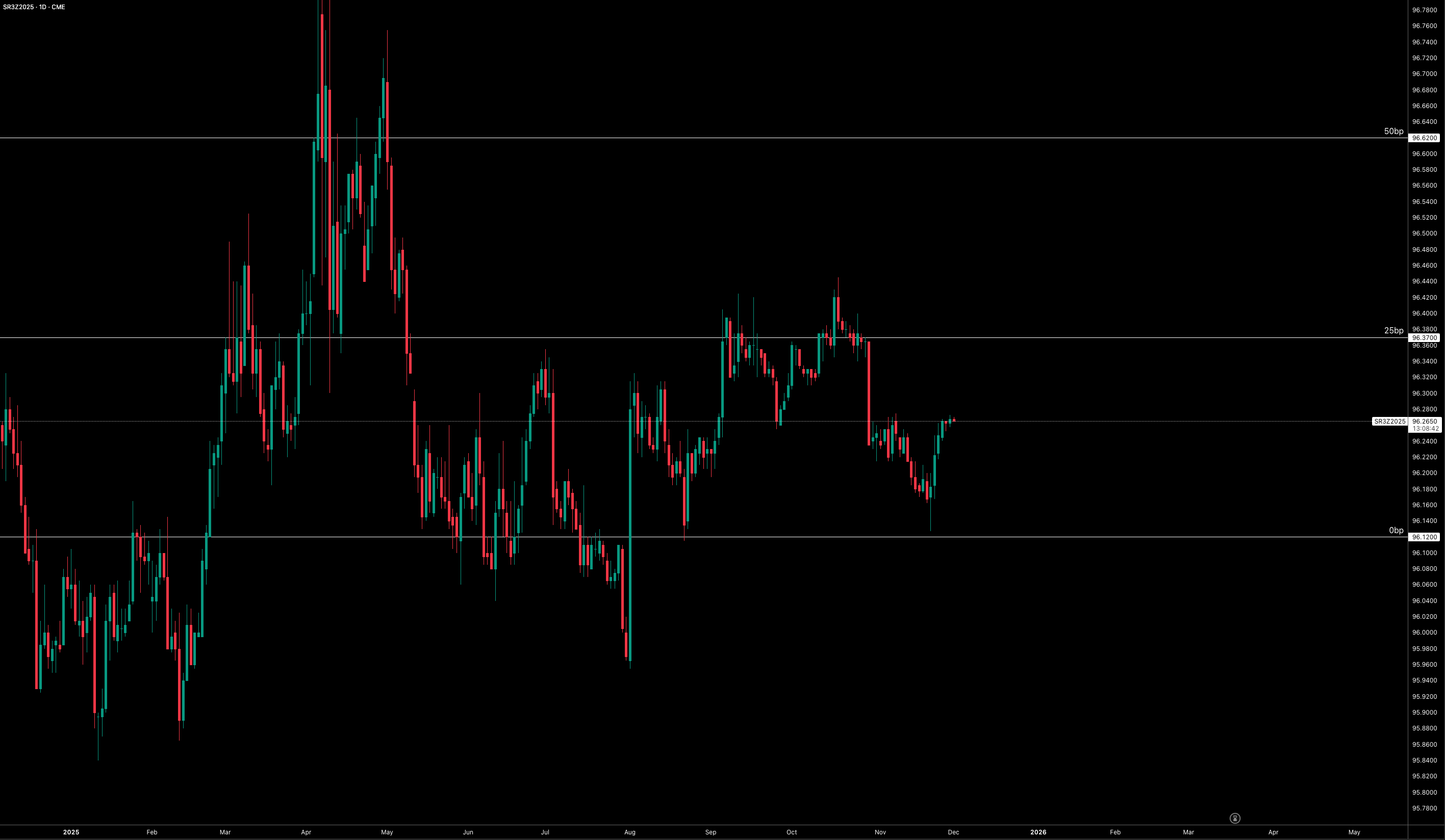Copper has rallied since I flagged the idea in the chat. Any move higher in SOFR pricing toward a 25 bp cut will support it. Still around 200 bp of risk here.