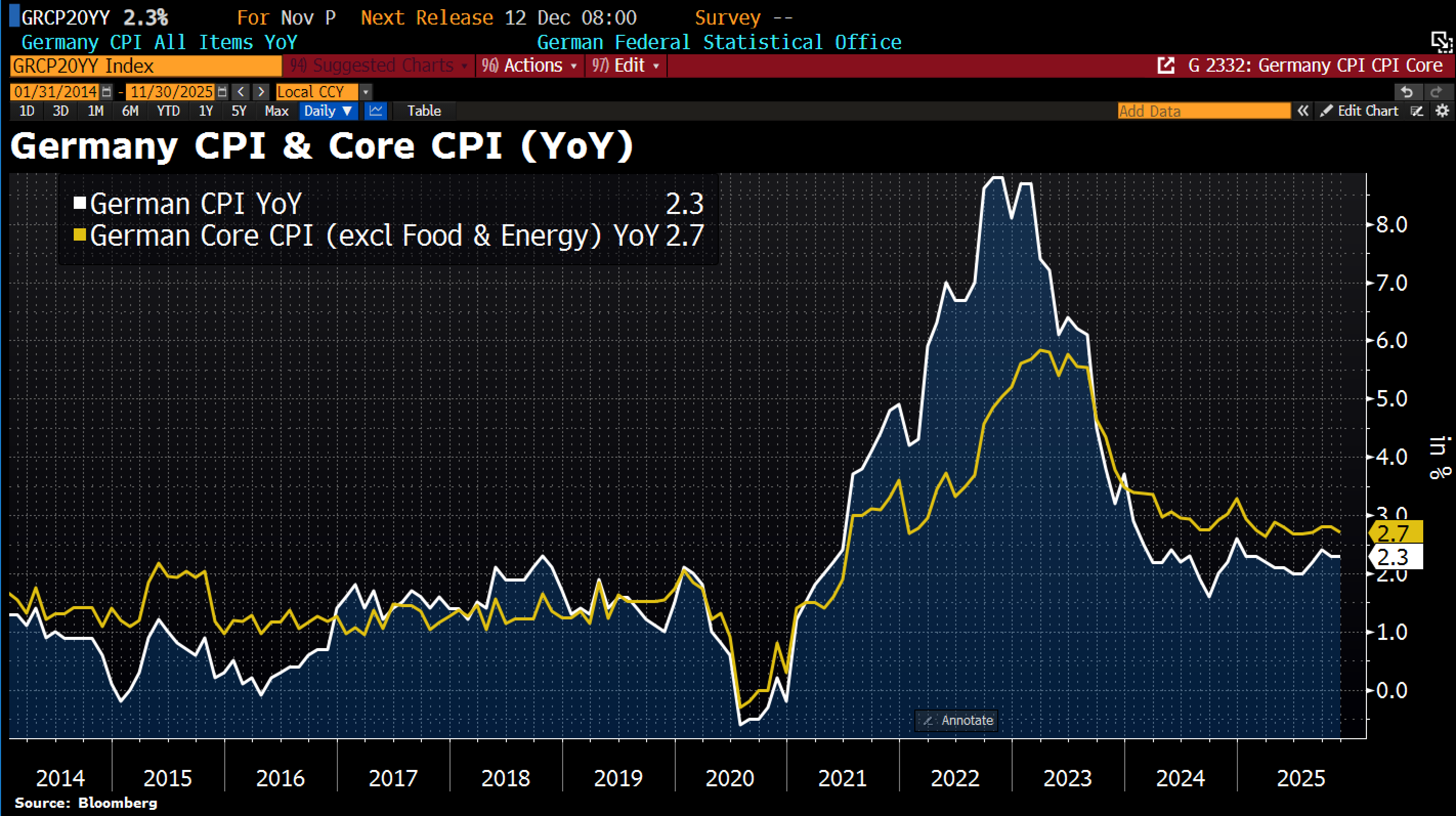 The tail risk to the ECB potentially turning more hawkish is the fact that one of their main members is struggling to get inflation under control. Germany’s inflation rate is still sitting stubbornly above 2%. In November, headline held at 2.3%, while core eased only slightly from 2.8% to 2.7% and services inflation is stuck at 3.5%. If this continues to tick up, I think we are likely at the terminal rate for the ECB, but if the range persists, then we’re likely 25bp away from the terminal rate. The headline Eurozone figure can be deceiving given how many members sit under the umbrella, so I prefer to focus on the main players. But let me be clear, I am not saying the ECB will re hike, even if Germany’s inflation hangs around these levels for a while.