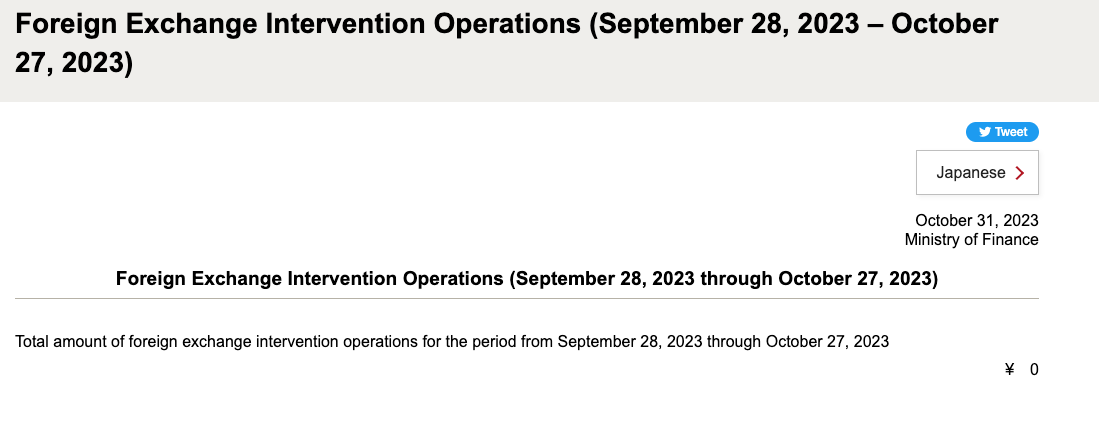 Since early October, there have been a number of speculations on whether the MOF intervened, driven by the sharp move on the 3rd of October, but after diving into the MOF’s currency books there’s no evidence of a currency intervention from Japan.