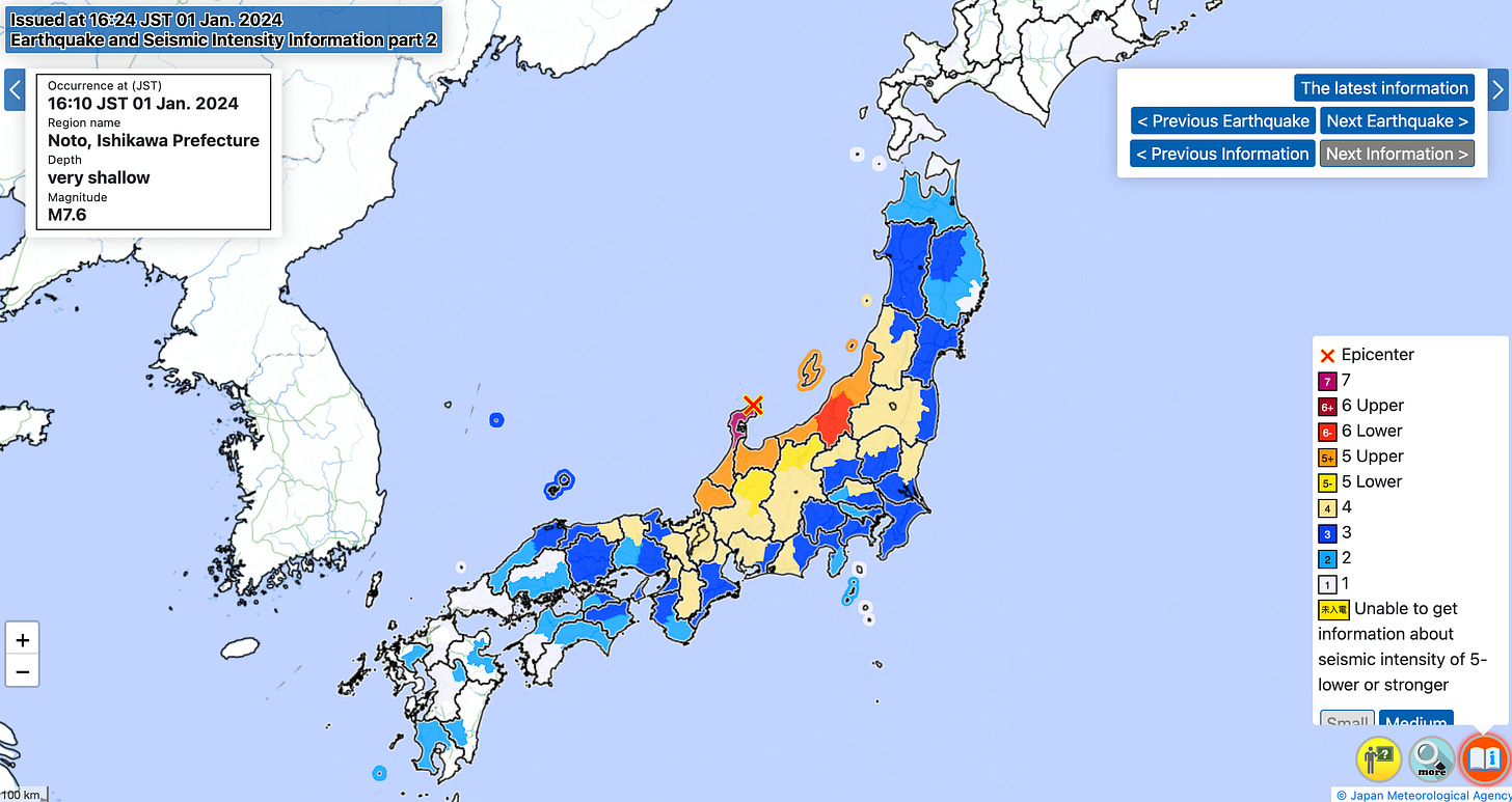 On Monday 1st January 2024, Japan reported the first 7.6 magnitude earthquake since May 30th 2015, when the Ogasawara earthquake struck offshore Japan. As we know, Japan is no newcomer to earthquakes, but that doesn’t mean there are no second-order effects which pose threats to financial markets. Here are a few stats of the 2024 Sea of Japan Earthquake: