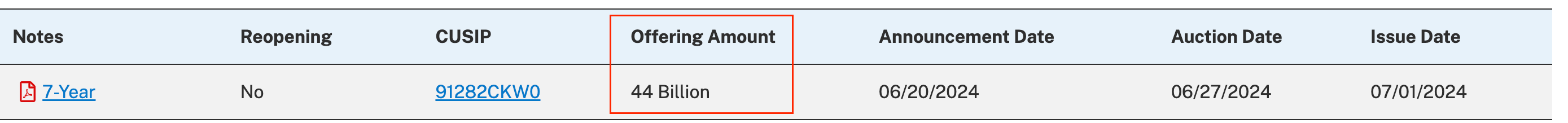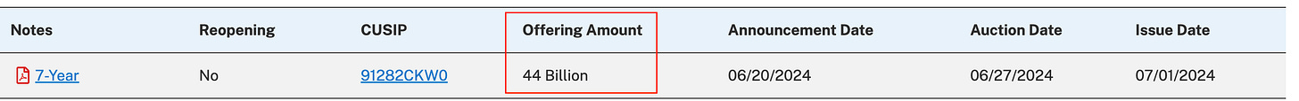 The offering amount you see here is generally the amount the Treasury wants to raise based on its estimated borrowing needs released in the quarterly refunding announcement (QRA).