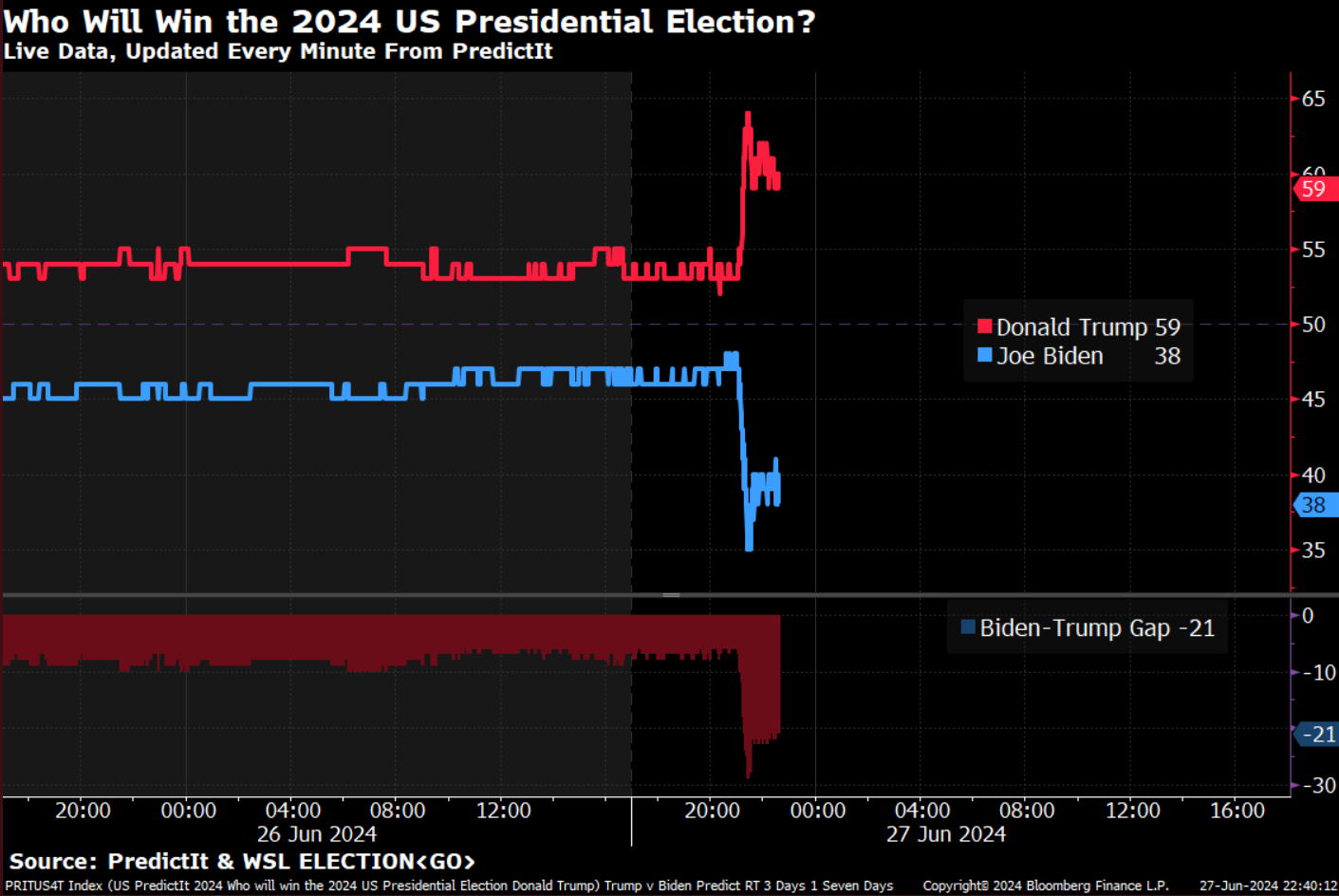 Last night Trump and Biden went at it in the Presidential debate; of no surprise bets of a Trump victory soared.