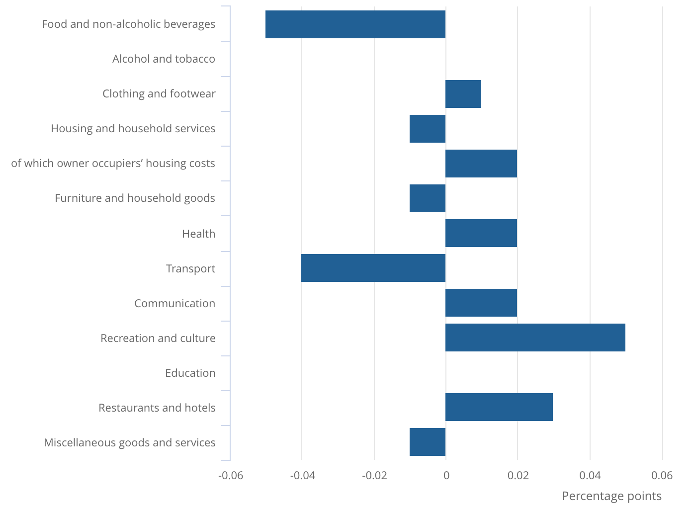 What we can gather from the above is the cyclicality of consumer spending behaviour as we enter the summer season. We’re seeing a shift from buying food and non-alcoholic beverages to spending on takeaways and restaurants as seen by the increase in restaurants and hotels. Warmer weather and longer days due to the sunlight is encouraging consumers to spend their days out in the city, or local town, deterring consumers from slowing the rate of purchases of recreational goods. To support that, recreation and culture had the most significant monthly contribution to the inflation rate.