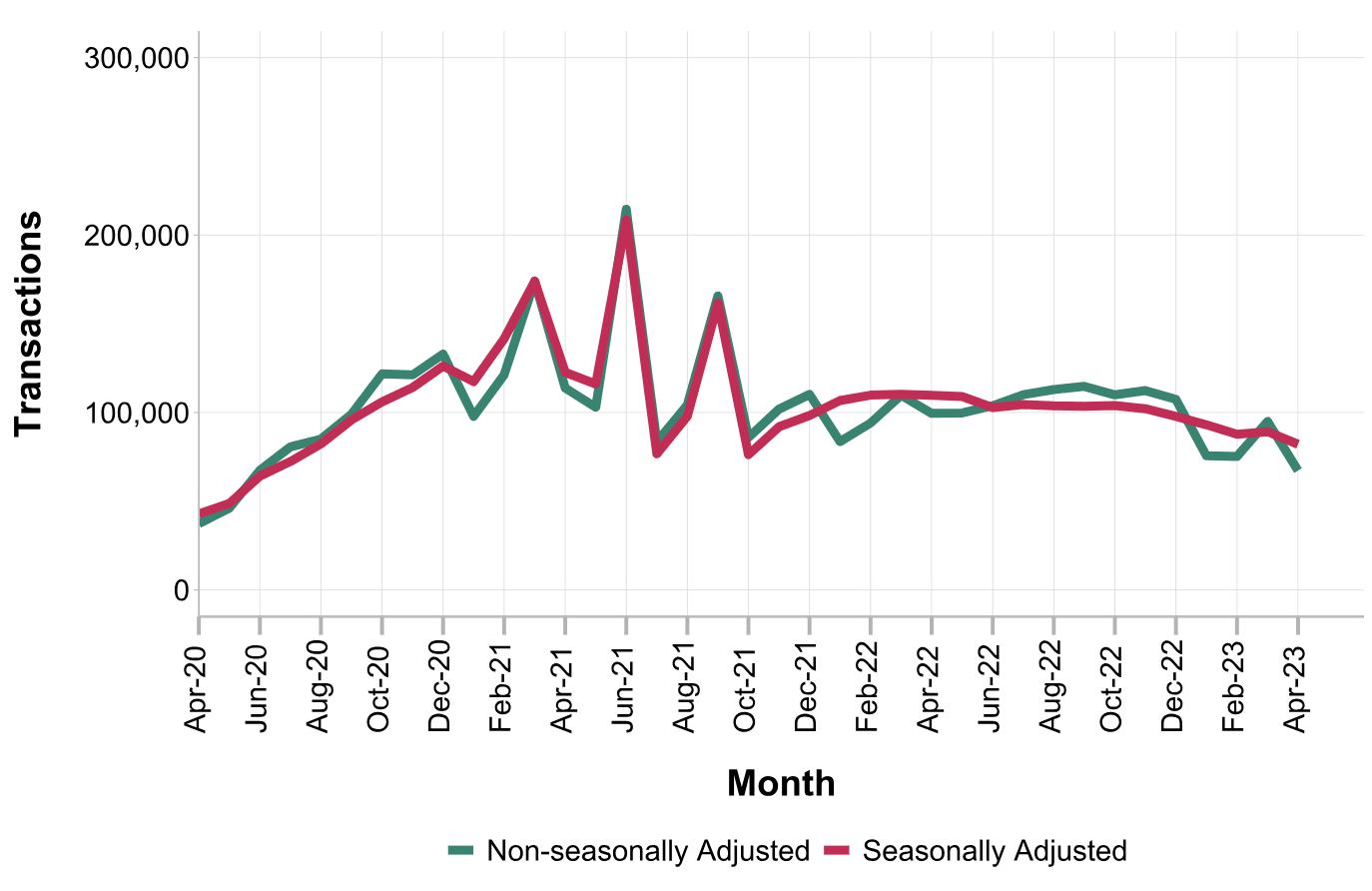 Just like any other market, there are cyclicalities, and within home sales, the trend is that more homes tend to be sold in the spring and summer compared to the autumn and winter. Looking at the line chart it’s evident the UK housing market has been on a consistent declexceptn of March, predicated by the rising cost of properties and the increasing mortgage rates.