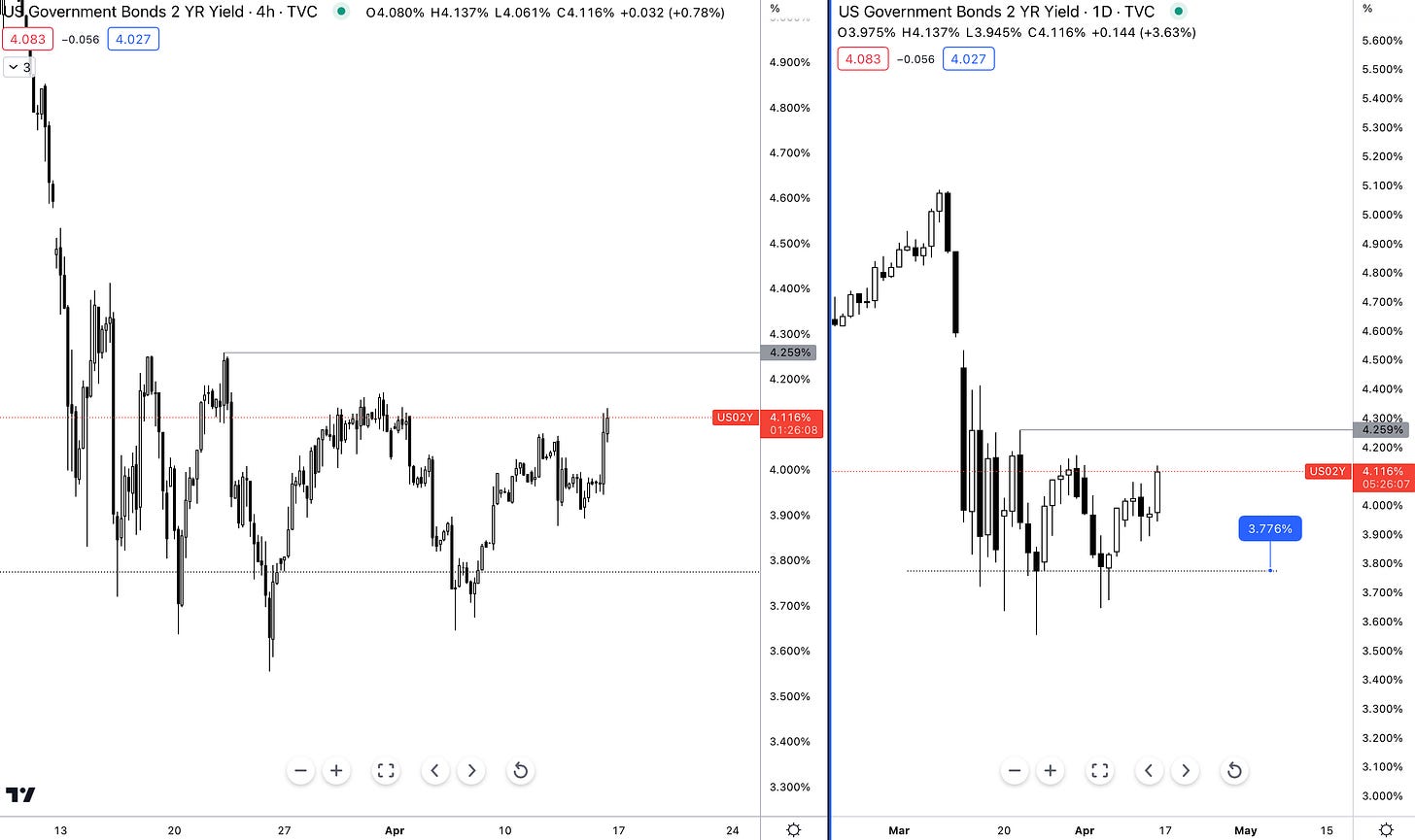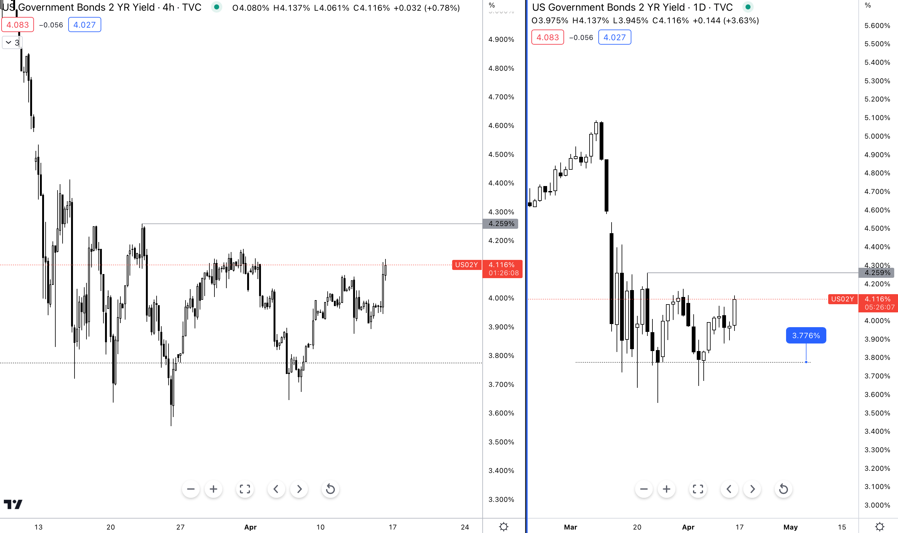As a rule of thumb, the shorter the maturity of the bond the more rate sensitive it is, so the 2-year provides a great insight into how investors believe rates will look like in the next 2 years; it’s also worth noting the correlation between bonds and the dollar something I’ve mentioned several times.