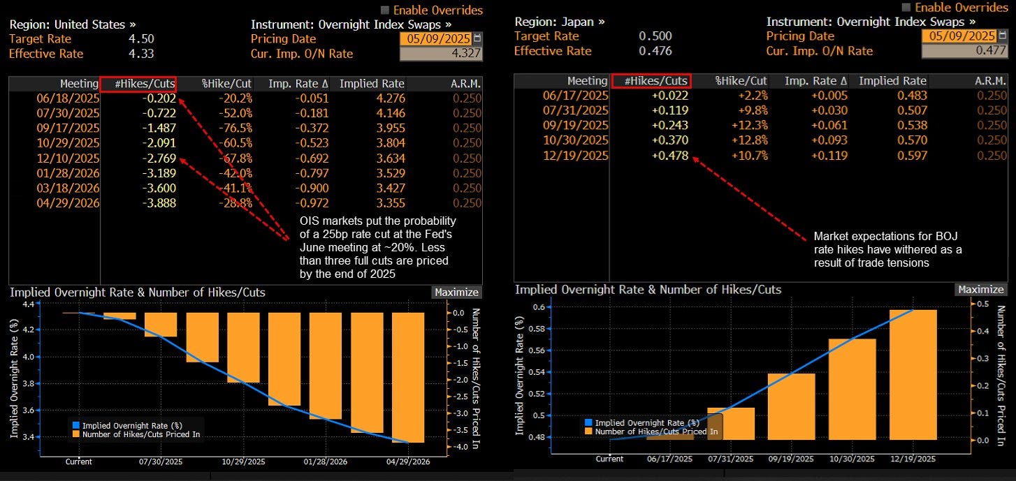 The economy that drew so many investors’ attention because of the interest rate path has now shown a crack. We’ve seen a major pullback in the OIS curve for Japan, just c.16bp of hikes is now priced in vs 40bp just one month ago. This takes us from an environment where the BoJ could’ve hiked in July vs RoW who were expected to cut in that period, to a place where the BoJ are expected to maintain rates until at least September while the RoW has had some rate cuts priced out.