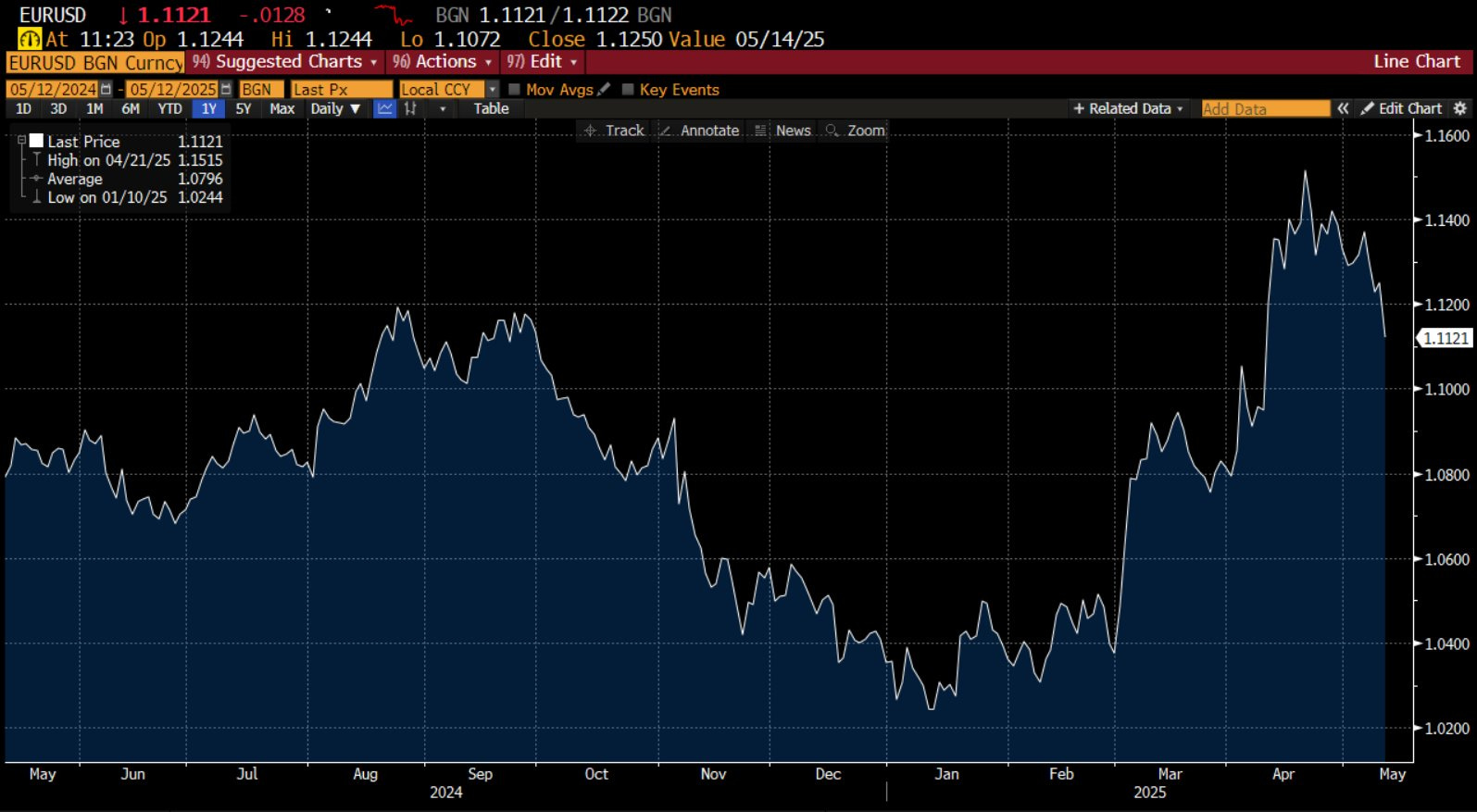 The fall in the Euro vs Dollar underscores that it takes very little for US exceptionalism to come back. As I’ve reiterated many times in recent months, this lack of confidence surrounding the US can be reversed by one man. So although many people are saying this is a structural shift away from the US to Europe, I disagree. Although the Euro has retraced some gains, this was the chart at the open on Monday which shows how one decision can bring back some certainty in the dollar.
