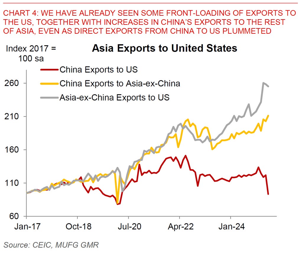 There has already been some front-loading from Asian countries (excluding China) of exports to the US, yet no inflationary effects have been that dominant as of yet (and likely won’t be, in my opinion). You can see front-loading below: