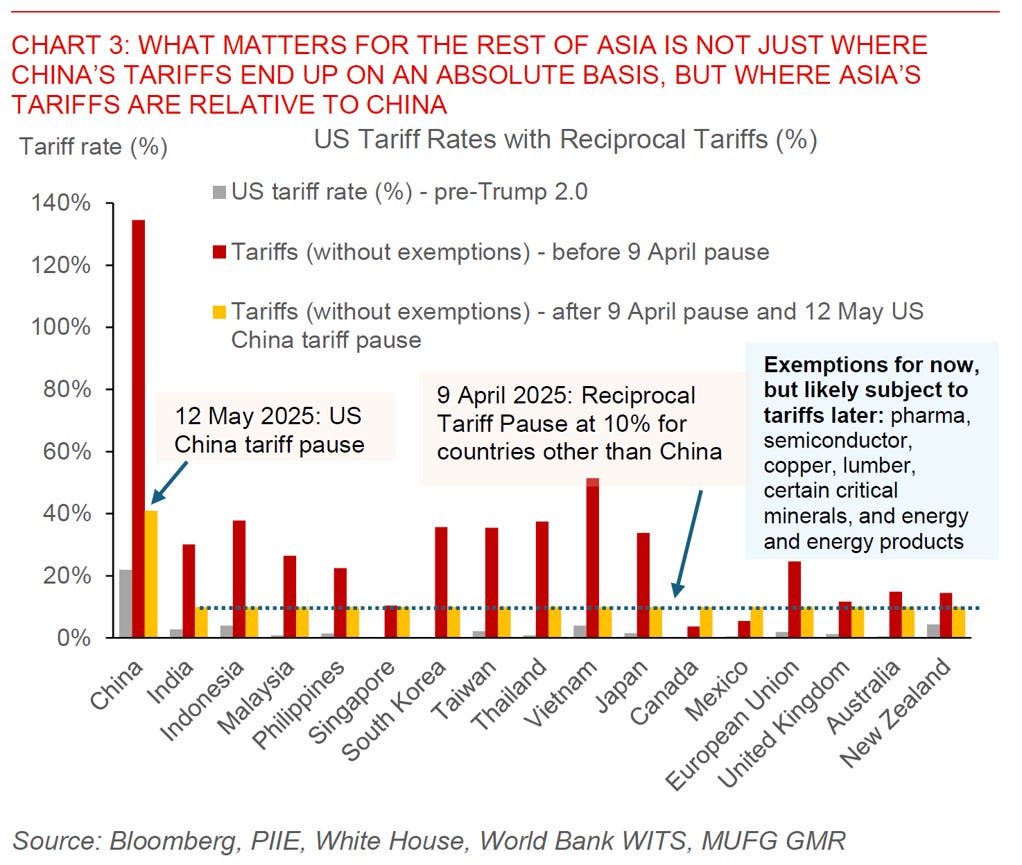 Asia is exposed but is being protected partially by the “sell America” theme and also the pause on tariffs. Although there is exemptions, there is high-risk that industries like semiconductor, pharma, copper, lumber and some others have their tariffs placed back on at a higher rate (but not as high as the initial tariffs).