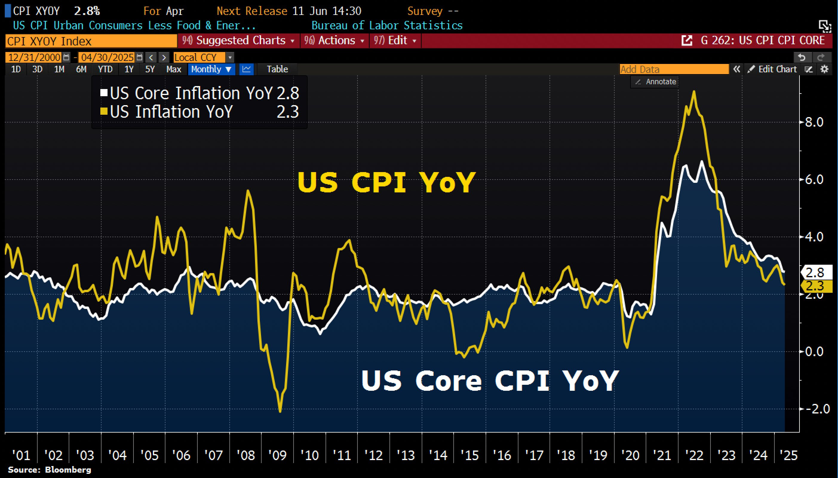Now, back in February there was major discussion above how inflationary tariffs would be, yet we are still to see major shocks to inflation. US CPI this week is evidence of that, coming in 10bp cooler than expected at 2.3%, which gives the Fed this confidence in pushing rate cuts back to “be more certain” that inflation is under control. The reason for the lack of inflationary pressures comes from the mitigation effect in currency values, energy down and some other smaller factors. This was an opinion I held back in January and it went well with USD shorts.