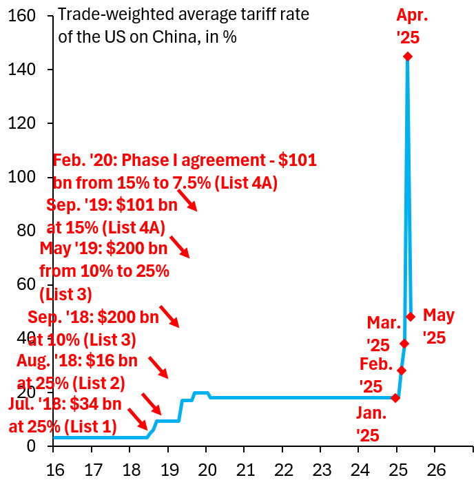 The trade talks between them led to a 90-day reduction in tariffs while a longer-term deal is made. The tariffs dropped significantly: