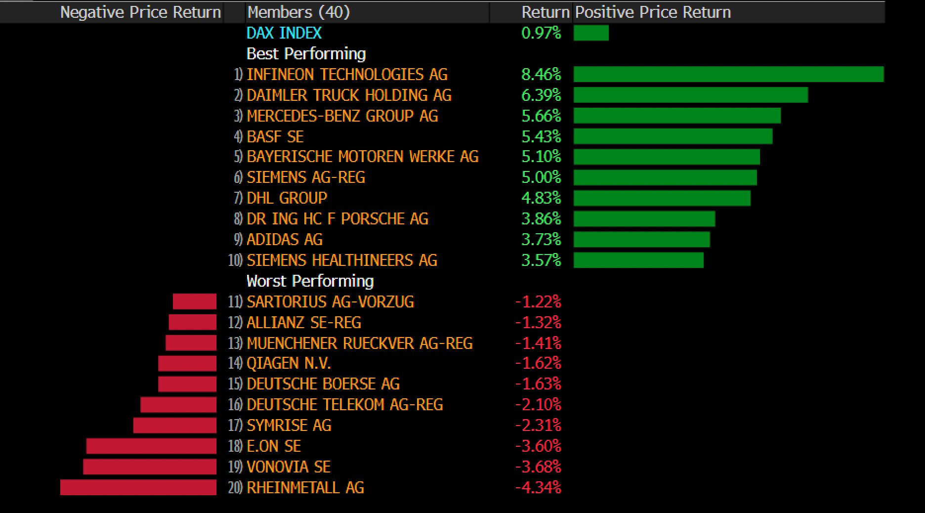 Coming as no surprise, the 90-day truce in the US-China trade dispute is boosted German stocks with strong China exposure.