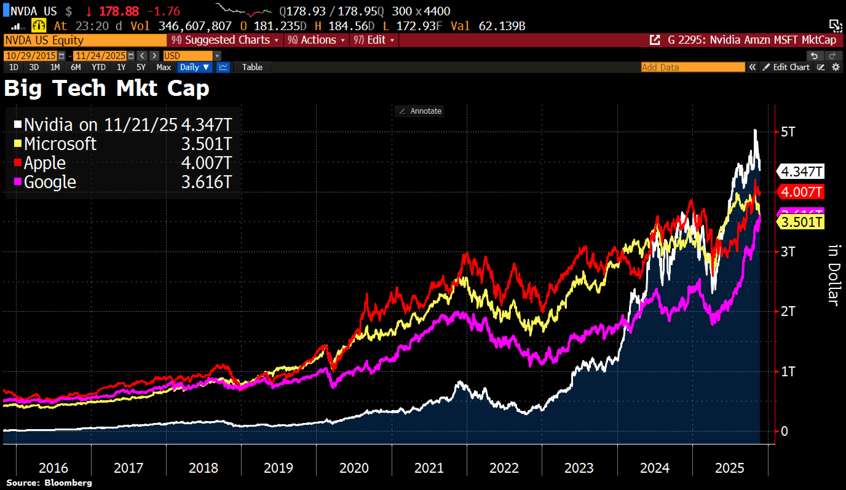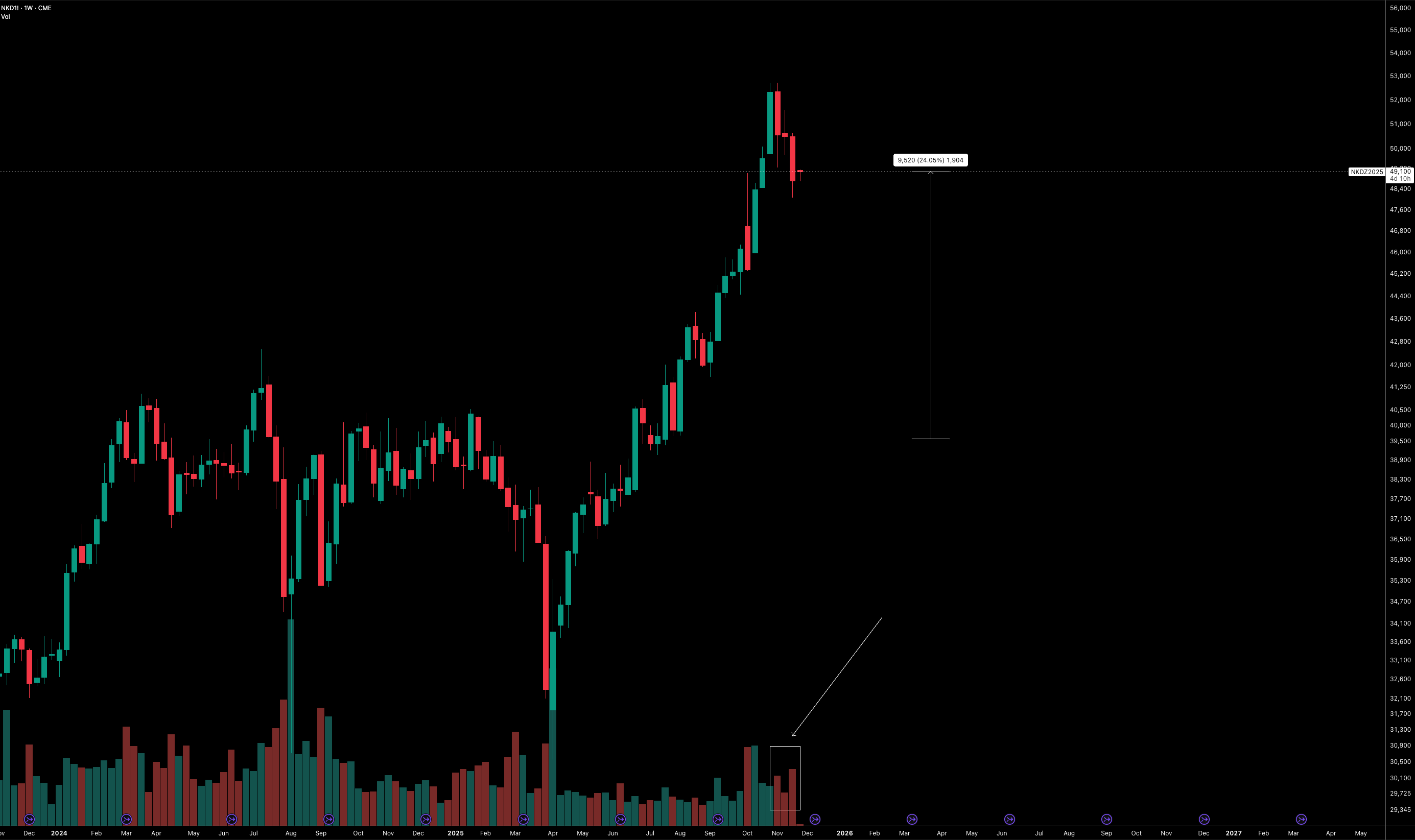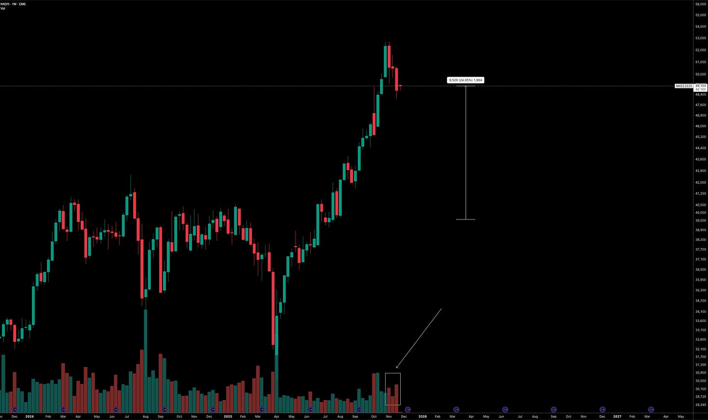 If the curve starts drifting closer to a full 25bp cut for December, that would probably support equity positioning again. But there are still some annoyances in the way, like higher real rates dragging, endless chatter about high P/E ratios and leadership rotating out of the rate sensitive sectors that powered the move higher, all while breadth keeps tightening. Big tech is still on a ridiculous run, but since they’ve been the engines behind such a strong rally, even a tiny wobble, like the dips we’re seeing in the charts below, can pull the entire index lower even if the broader regime is still friendly for upside.