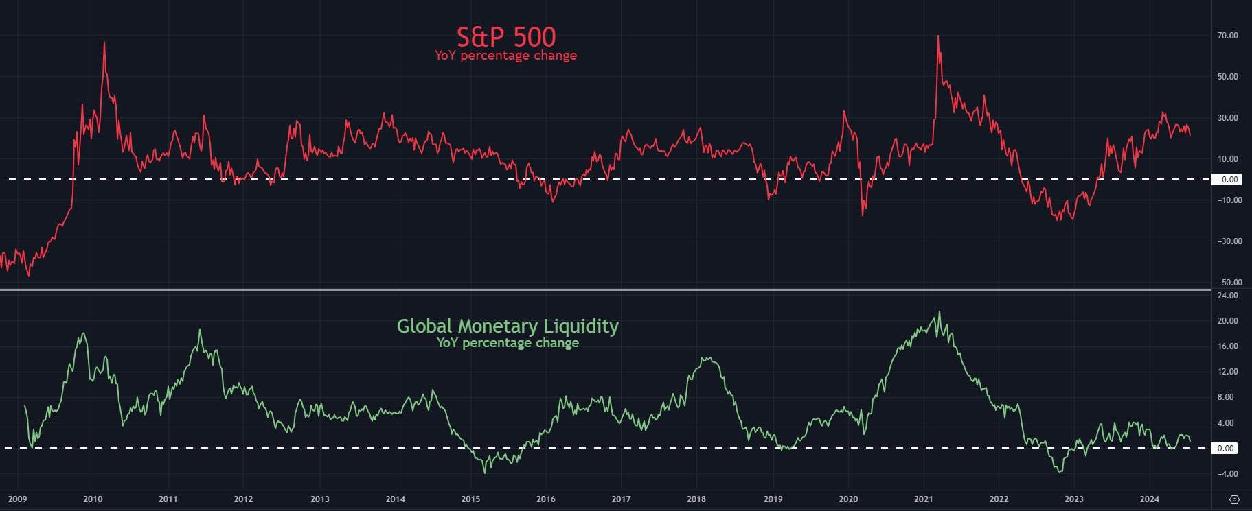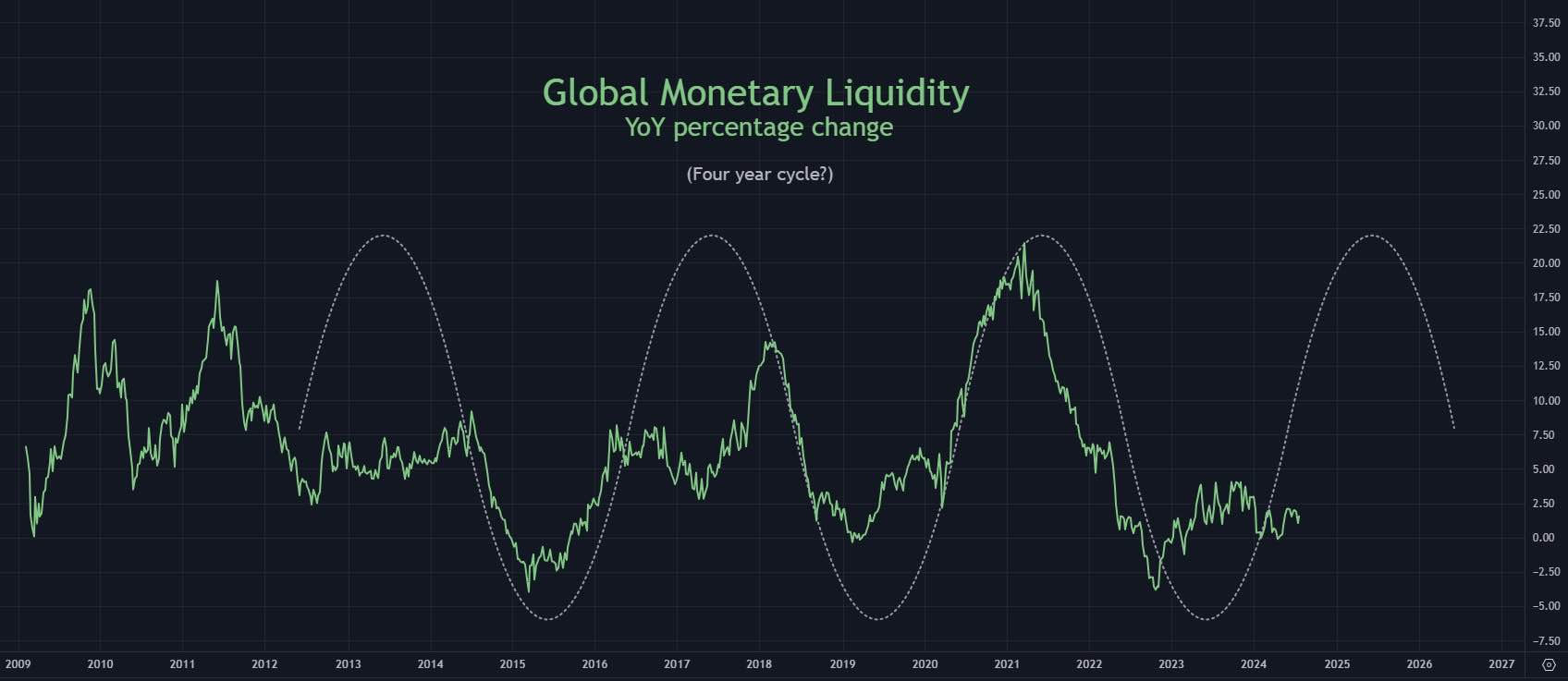The liquidity rebound won’t be immediate, it’ll trickle into the economy but I do believe the rebound has already began. The higher global liquidity will bring stability into larger economies and balance the labor market because borrowing for businesses will be more affordable and easier to access. This stability in the global labor market will reignite growth and potentially save some economies like the US from having a hard landing (a recession). Couple the liquidity introduction with multiple global events such as presidential optimism in the US, Chinese stimulus and slowly accommodating monetary policy, inflation close to central bank targets and the global cutting of interest rates, there is plenty of reversal points across assets in the near future.
