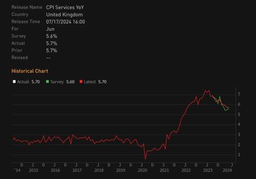 The figure of 5.7% causes some major concern for the central bank, bringing higher for longer interest rate expectations. Services inflation is very sticky because of the components it’s made up of, including rent costs, transportation services, entertainment services, utility bills and healthcare services. Once prices in these areas are risen, they’re very hard to bring back down.