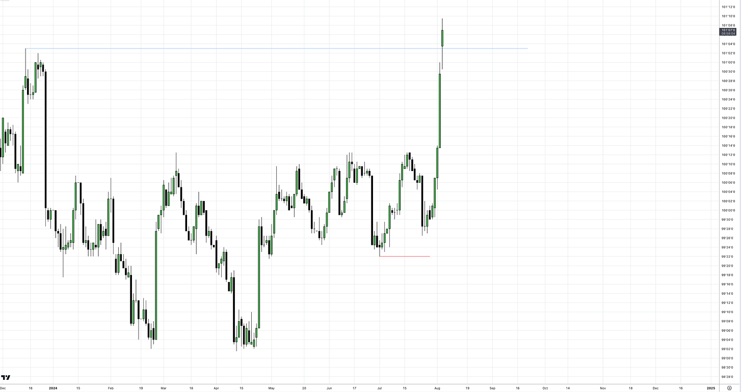 The BoE cut last Thursday has created a larger spread between the UK and US interest rate. However, in September, the Federal Reserve is set to cut rates by 50bps. This creates an equal level in rates between the UK & US, but I think investors are seeing past that and asking - Where will each rate be in 12 months time? (Most likely in favour of higher rates in the UK).