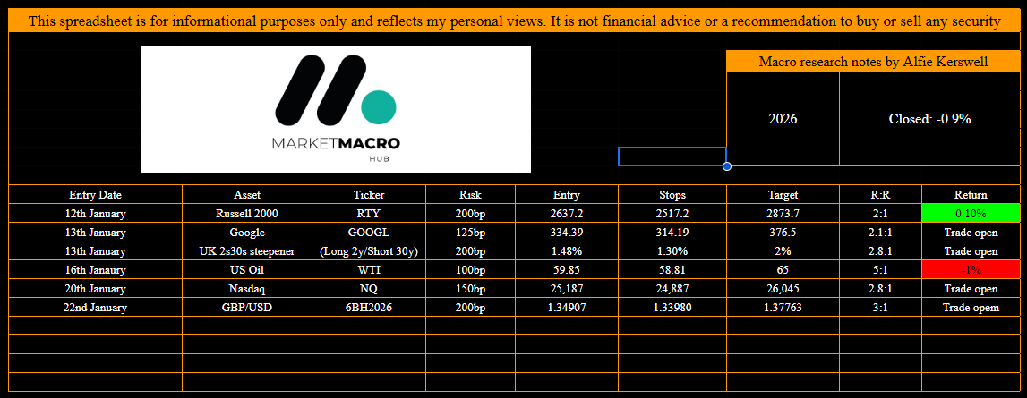 Stepping back, the current regime still makes sense for equities to grind higher, even if the pace is no longer explosive. Growth is holding up on a 3 and 6 month basis even with some softening in the very short-term labour data. Inflation pressures are present, policy expectations are fairly well anchored, and risk conditions are not flashing stress. The result is a market that can still move higher without needing a big repricing lower in rates or a weaker dollar to do the work. But ultimately, tail-risks here are building and have any marginal movements in them will cause outsized reactions in markets.